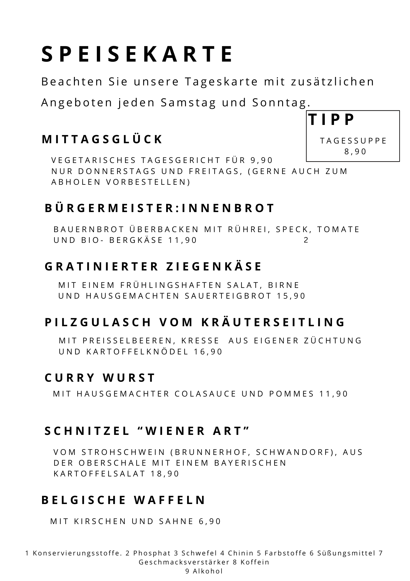Speisekarte und Events